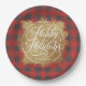 Gold Faux Foil Happy Holidays Buffalo Plaid Paper Plate