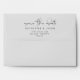 Elegant "save the date" envelopes with handwritten script on the back flap and your return address in sans serif font. Inside is lined with beautiful tropical foliage illustrations in different faux foil colours and backgrounds.