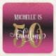 Gold Faux Glitter 50 & Fabulous Pink Ombre Square Paper Coaster