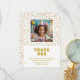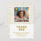 Gold Faux Glitter Birthday Girl Photo Thank You Card. The card has golden stars and faux glitter dots. Cute birthday thank you card for your friends and family. Upload your photo and personalise it with your name, thank you note and name.