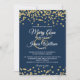 Gold Faux Glitter Confetti Elegant Wedding Navy Invitation