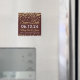 It was a bit smaller than expected, but I was too excited to check dimensions. The product itself send well printed though the grey text is a bit paint. Magnet worked perfectly on my fridge.