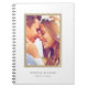 This is a commemorative photo notebook designed for brides and grooms to keep notes on their upcoming wedding day plans. Keep all the essentials in one place like meetings, dates, costs, venues, guest and bridal party lists, table arrangements, honeymoon location options and all your other thoughts and resources that will make your big day special. The notebook features a faux gold glitter frame on a clean white background that is customisable and photo.