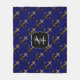 Gold faux sparkles Anchor pattern navy Monogram Fleece Blanket