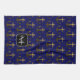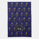 Gold faux sparkles Anchor pattern navy Monogram Tea Towel