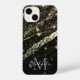 Gold faux sparkly line black abstract Monogram iPhone Case