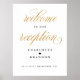 This is a beautiful landscape poster welcome to our reception wedding sign featuring gold faux script text.