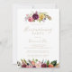 This gold feather boho tropical housewarming party invitation is perfect for a modern event. The design features hand-painted brown wild feathers, boho yellow, white, purple, pink, blush, burgundy flowers and blue berries neatly arranged into beautiful bouquets.
