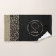 A three tone sleek design created with a black backdrop for contrast and little gold feathers as the second layer and the third is a glittery gold border where on top you can personalise it with a letter or logo to make it uniquely your own. Stylish elegant vibes