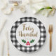 Gold Feliz Navidad Black White Buffalo Plaid Paper Plate