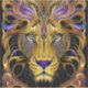 gold filigree lion head, gold and purple shades