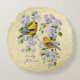 Gold Finches & Apple Blossoms Yellow Round Cushion