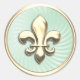 Gold Fleur de Lis on Mint Twirl Classic Round Sticker