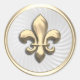 Gold Fleur de Lis on White Twirl Background Classic Round Sticker