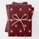Gold Fleur-de-Lis on Wine Red Wrapping Paper Sheet
