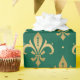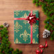 Gold fleur-de-lis seamless pattern on green wrapping paper