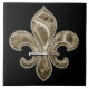 Gold Fleur de Lis Square Ceramic Tile 6 inch - blk