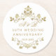 Gold Floral 50th Wedding Anniversary Round Paper Coaster