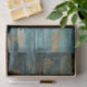 A distressed gold flower stencil-like pattern overlays a background of blue/green rustic wood. Perfect for decoupage art, paper crafts, or gift wrapping. Make sure to check out the matching gift bag!