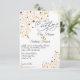 Wedding invitation with gold floral art illustration on white background, minimalist and artistic concept.