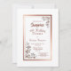 An elegant rose gold/copper bordered floral surprise 40th birthday dinner party invitation featuring warm gold floral foliage embellishments in the diagonal corners and burgundy text.