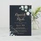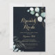 This gold floral brunch with the blue bride shower invitation is perfect for a rustic wedding shower. This artistic design features hand-drawn gold floral and watercolor eucalyptus green foliage in a dark blue background, inspiring natural beauty.