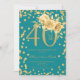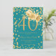 Gold Floral & Confetti 40th Birthday Party Teal Invitation