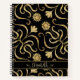 Gold Floral Damask Sunflower Classy Black Folk Art Notebook
