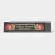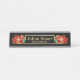 This design features a gold edge floral graphic and frame with the flowers in red with a green leaf. Impress colleagues and visitors with this stylish nameplate when they see it sitting on your desk