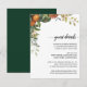 Pretty, elegant, modern and bohemian wedding guest details enclosure cards for your special occasion! The design matches with the rest of the Orange Leaf Foliage Collection. Watercolor orange fruit with dark and light green leaves leaf foliage side border frames the top of your wedding guest details enclosure cards details. Personalise with your desired details such as hotel accommodations, group codes, transportation, directions, welcome reception information, and your wedding website url.