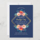 A beautiful, navy blue, watercolor invitation with a polygonal gold frame and clusters of pink and red flowers and foliage. (<a href='https://www.freepik.com/free-vector/watercolor-floral-frame-with-golden-polygonal-lines_2628011.htm'>Designed by Freepik</a>). <br/><br/>The card is easy to customise with your wording, font and font colour.<br/><br/>Not exactly what you're looking for? All our products can be custom designed to meet your needs at no extra charge.<br/><br/>Simply contact us at askcottonlamb@gmail.com.<br/><br/>Coordinating products available: Just ask us!