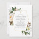 Floral confirmation invitation featuring blush pink peonies, wild herbs, cotton and lilies with gold geometric frame customisable to your event specifics.