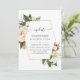 Floral postponed wedding invitation featuring blush pink peonies, wild herbs, cotton and lilies with gold geometric frame customisable to your event specifics.
