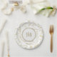 Gold Floral Leaves Rustic Wedding Reception Plates. Customise with any text. Matching items are available.
