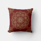 Gold floral mandala on dark red background cushion