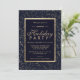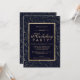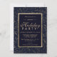 A modern elegant gold with frame invitation geometric gold floral illustration pattern on hand painted navy blue winter corporate Christmas holiday party. elegant, modern and winter wonderland corporate holiday party theme. Perfect for winter celebrations, Christmas and New Year's eve