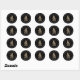 Label your correspondence or products with these chic stickers that match our Floral Scissors logo branding suite for hairstylists and salons. Rich black stickers feature a faux gold foil scissors illustration in the centre, with two text fields curving around the outside, in classic white lettering.