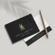 Elegant gift certificate design displays your name and/or business name in white lettering beneath a pair of stylist's shears in faux gold foil adorned with flowers, on a rich black background. Add your desired gift certificate wording and business contact information on the reverse side. A chic and elegant choice for salons and hair stylists.