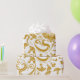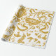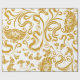gold floral & swirl designs on a white background wrapping paper