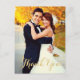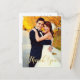 Glamourous and eye-catching, this portrait-format full-bleed photo thank you postcard features large, flourished "Thank You" calligraphy in warm gold script sweeping across the lower portion of the card. The gilded lettering glows beautifully against any wedding photo, with the customisable couple names and wedding date displayed on the reverse. A striking keepsake for couples with a formal or autumn-inspired aesthetic.