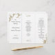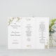 White tri-fold wedding program with gold leafy flourish. Customise with black text in three sections, which will be the front, order of ceremony, and wedding party sections. Then fold accordion style / z-fold / tri-fold, after purchase. Please NOTE: Changing the paper type may make this difficult to fold.