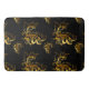 A very elegant pattern featuring large, sweeping metallic gold flourishes with ornate leaves and swirls, scattered across a black background.