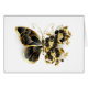 Gold flower butterfly with black jewellery orchid, decorated with gold leaves on white background.