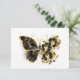 Gold flower butterfly with black jewellery orchid, decorated with gold leaves on white background.