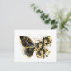Gold flower butterfly with black jewellery orchid, decorated with gold leaves on white background.