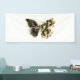Gold flower butterfly with black jewellery orchid, decorated with gold leaves on white background.