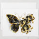 Gold flower butterfly with black jewelry orchid, decorated with gold leaves on white background.