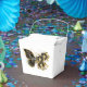 Gold flower butterfly with black jewellery orchid, decorated with gold leaves on white background.