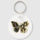 Gold flower butterfly with black jewellery orchid, decorated with gold leaves on white background.