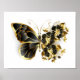 Gold flower butterfly with black jewellery orchid, decorated with gold leaves on white background.